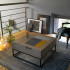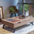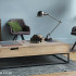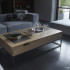 Table basse 2 plateaux relevables et 1 abattant, en chêne massif, pieds métal.